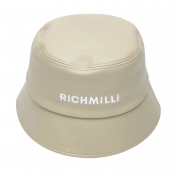 레터링 레더 버킷햇 베이지